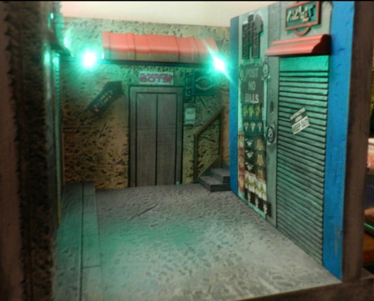 City Alley Cyberpunk diorama 1/12 scale for action figure photography Marvel Legends TMNT Mezco Neca 15x12x12